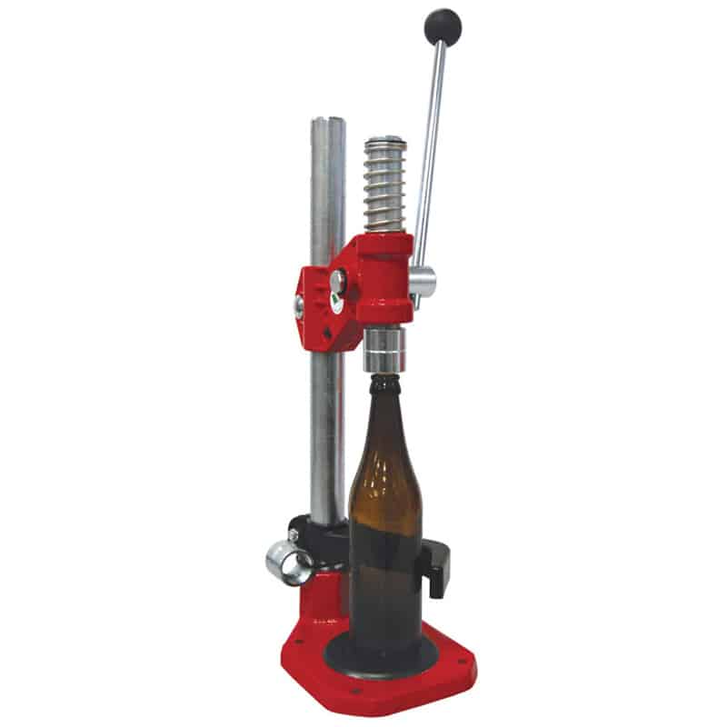 This heavy duty commercial manual capping mechanism is ideal when you have not a pressure air supply and a need to close a small quantity of bottles of the same height.