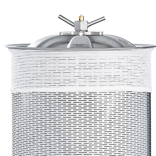 HAP-FB-90S Filtration bag is a special cloth filter with capacity 90 liters, which is designed to filter the sediment (sludge) during the fruit pressing. The sediment is poured into the bag, and it is re-pressed in the water press again. The pure cider passes through the bag and the rest of the sediment remains inside the bag. The efficiency of the hydraulic press is up to 95% of fruit juice if the bag is used.