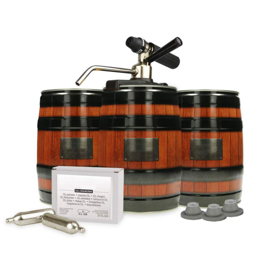 - 3pcs of the 5-liters mini kegs with special rubber plug